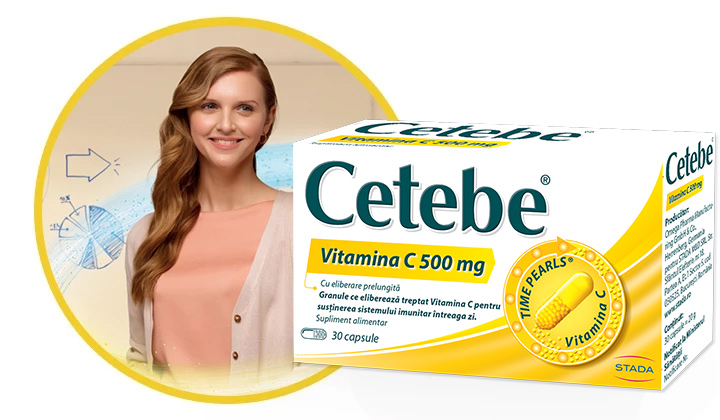 Sistemul imunitar este foarte important pentru starea noastră de sănătate deoarece ne protejează împotriva infecțiilor. Toate produsele din gama Cetebe conțin Vitamina C, un micro-nutrient esențial pentru funcționarea normală a sistemului imunitar. În funcție de nevoi, poți folosi produse cu doză mare de Vitamina C sau combinații pe baza de Vitamina C pentru susținerea sistemului imunitar, a energiei zilnice, a bunei funcționari fizice și psihice.